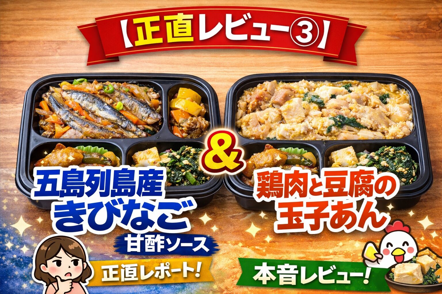 「五島列島産きびなごの甘酢ソースかけ」と「鶏肉と豆腐の玉子あん」を食べた感想をまとめます。